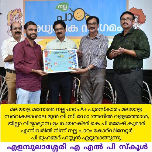 *മലയാള മനോരമ നല്ല പാഠം ജില്ലാതലത്തിൽ ഒന്നാം സ്ഥാനം