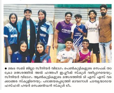 മലപ്പുറം റവന്യൂ ജില്ലാ സ്കൂൾ ഗെയിം സെപക് താക്രോ മത്സരത്തിൽ സീനിയർ ഗേൾസ് വിഭാഗത്തിൽ ചാമ്പ്യന്മാരായ മങ്കട സബ് ജില്ലാ ടീം