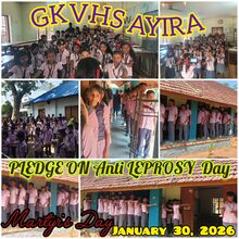 World Leprosy Day is observed internationally every year on last Sunday of January to increase the public awareness of leprosy or Hansen's Disease. in our school pledge was delivered by all the students of LP, UP and HS students. At 11 am , 2 minutes MOURNING was there to commemorate the martyrs of INDIA.