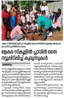 വന മഹോത്സവ വാരാചരണങ്ങളുടെ ഭാഗമായി ഒളകര ഗവ:എൽ.പി ഹരിത ക്ലബ്ബിന് കീഴിൽ സ്കൂൾ വളപ്പ് ഔഷധ സസ്യങ്ങളുടെയും പൂന്തോട്ടങ്ങളുടെയും വളപ്പാക്കി മാറ്റാനൊരുങ്ങിയിരിക്കുകയാണ് അധ്യാപകരും വിദ്യാർത്ഥികളും. സ്കൂളിന് ജില്ലാ ശാസ്ത്രമേളയിൽ ഒന്നാം സ്ഥാനം ലഭിച്ചതിന്റെ വിപുലീകരണാർത്ഥം കൂടിയാണ് ഇത്തവണ സ്കൂളിലെ ഔഷധ ഉദ്യാനമായ വൃന്ദാവനം പൂന്തോട്ടം ഗംഭീരമാക്കാൻ തയാറായിരിക്കുന്നത്. തൈ നടീൽ കർമ്മം പി.ടി.എ പ്രസിഡന്റ് പി.പി സെയ്ദു മുഹമ്മദ് ഉദ്ഘാടനം ചെയ്തു. എച്ച്.എം എൻ വേലായുധൻ, ഇബ്രാഹിം മുഴിക്കൽ, പി സോമരാജ്, സിറാജ്, പി.കെ ഷാജി, കെ.കെ റഷീദ്, വി.ജംഷീദ്, കരീം കാടപ്പടി നേതൃത്വം നൽകി.