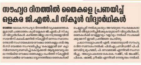 ലോക സൗഹൃദ ദിനത്തിൽ തൈകളെ പ്രണയിച്ച് ഒകര ജി.എൽ.പി സ്കൂളിലെ കുട്ടികളുടെ സൗഹൃദ ദാനാഘോഷം വേറിട്ട കാഴ്ചയായി. സൗഹൃദ ദിനത്തോടനുബന്ധിച്ച് വ്യക്ഷത്തൈകളുമായി ചങ്ങാത്തം കൂടുന്നതിനായി തൈകളെ തലോടിയും വെള്ളം നൽകിയും കളപറിച്ചും വ്യക്ഷത്തൈകൾക്ക് സംരക്ഷണം നൽകിയായിരുന്നു ഈ വിദ്യാർഥികളുടെ ലോക സൗഹൃദ ദിനാഘോഷം. കഴിഞ്ഞ മലപ്പുറം ജില്ലാ ശാസ്ത്രമേളയിൽ സയൻസ് കളക്ഷനിൽ സ്കൂളിന് ഒന്നാം സ്ഥാനം നേടാൻ സഹായകമായ ഔഷധ തൈകളും ബി.ആർ.സി വേങ്ങര സംഘടിപ്പിച്ച കൊള്ളാമീ മഴ മഴക്കാല ക്യാംപിനോടനുബന്ധിച്ച് കോട്ടക്കൽ ആര്യ വൈദ്യശാല സ്കൂളിന് നൽകിയ ഔഷധതൈകളുമായി സ്കൂളിൽ തയാറാക്കിയ ഔഷധ ഉദ്യാനത്തിലെ തൈകൾ സംരക്ഷിക്കുമെന്ന് പ്രതിജ്ഞയെടുത്ത് അവരുടെ പൂർണ സംരക്ഷകരാവാൻ തീരുമാനിച്ചിരിക്കുകയാണ് വിദ്യാർഥികൾ. മരം എന്റെ മരം, കൂട്ടു കൂടാം കളങ്കരഹിത ചങ്ങാതിക്കൊപ്പം എന്ന സന്ദേശം ഉയർത്തിക്കൊണ്ടായിരുന്നു കുട്ടികളുടെ സൗഹൃദ ദിനത്തിലെ വൈവിധ്യ സമീപനം. പ്രധാനാധ്യാപകൻ എൻ വേലായുധൻ സൗഹൃദ ദിന സന്ദേശം നൽകി. പി.പി സെയ്ദു മുഹമ്മദ് സോമരാജ്.പി എന്നിവർ ആശംസകൾ നൽകി .