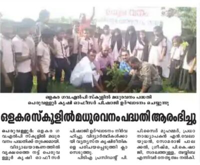 സ്കൂളിൽ നിലവിൽ പരിപാലിച്ചു വരുന്ന മധുര വനം പദ്ധതിയുടെ ഭാഗമായി ആയുർജാക് പ്ലാവ്, വിവിധ ഇനം മാവുകൾ, സപ്പോട്ട, പേര ഉൾപ്പെടെ വിവിധ ഫല വൃക്ഷ തൈകൾ സ്കൂളിലുണ്ട്. വാർഡ് മെമ്പർ തസ്ലീന സലാം പുതിയ പദ്ധതി വിശദീകരിച്ചു. പി.ടി.എ പ്രസിഡന്റ് പി.പി. അബ്ദുസമദ്, ഹെഡ് മാസ്റ്റർ കെ.ശശികുമാർ, സോമരാജ് പാലക്കൽ എന്നിവർ സംസാരിച്ചു.