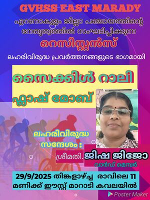 ലഹരിവിരുദ്ധ സന്ദേശവുമായി റാലിയും ഫ്ലാഷ്മോബും സംഘടിപ്പിച്ചു. മുവാറ്റുപുഴ :ഈസ്റ്റ് മാറാടി വൊക്കേഷണൽ ഹയർ സെക്കൻഡറി സ്കൂൾ ലഹരിക്കെതിരെ റാലിയും ഫ്ലാഷ് മോബും സംഘടിപ്പിച്ചു.മാറാടി ഗ്രാമപഞ്ചായത്ത് ക്ഷേമകാര്യ സ്റ്റാൻഡിംഗ് കമ്മിറ്റി ചെയർപേഴ്സൺ ജിഷ ജിജോ മുഖ്യ സന്ദേശം നൽകി. എറണാകുളം ജില്ലാ പഞ്ചായത്ത് ലഹരിവിരുദ്ധ ക്യാമ്പയിൻ റസിസ്റ്റൻസ് ൻ്റെ ഭാഗമായി സ്കൂൾ ലഹരിവിരുദ്ധ ക്ലബ്ബാണ് പരിപാടി സംഘടിപ്പിച്ചത്. സ്കൂൾ ഹെഡ്മിസ്ട്രസ് ഷെറീന വി എ സ്വാഗതം ആശംസിച്ചു. സ്നേഹത്തണൽ കണ്ണൻ ചേട്ടൻ,പി ടി എ പ്രസിഡൻറ് ഗ്ലിന്നി ഉലഹന്നാൻ,പി ടി എ വൈസ് പ്രസിഡൻറ് സിനിജ സനിൽ എന്നിവർ ആശംസകൾ അറിയിച്ചു.സ്കൂൾ ലഹരി വിരുദ്ധ ക്ലബ്ബ് കൺവീനർ ഷിബ എം. ഐ നന്ദി പറഞ്ഞു.