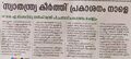 സ്വാതന്ത്ര്യകീർത്തിയുമായി ബന്ധപ്പെട്ട പത്രവാർത്തകളിൽ ചിലത്
