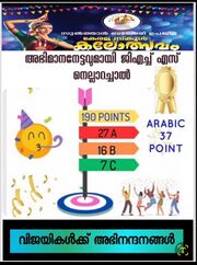 15:23, 20 നവംബർ 2025 Kalamela Point.jpg (പ്രമാണം) 121 കെ.ബി. In Sulthan Bathery sub district Kalolsavam GHS Nellarachal got 190 points. 1