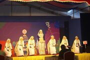 20:23, 16 ജനുവരി 2026 KSK2026-22034-16- Arabic Group Song- Hrishikesh PS.jpg (പ്രമാണം) 3.14 എം.ബി. A group of High School girls delivers a performance for the Arabic Group Song competition at Stage 16 (Vaadamalli) during the 64th Kerala School Kalolsavam 2026. The seven participants, dressed in matching black modest attire and hijabs, are captured singing into microphones on stage. The venue at CMS HSS Thrissur features the official festival backdrop and yellow-and-red valances. This competition, part of the state’s largest cultural gathering, showcases the students' vocal harmony and ling... 1