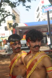 20:40, 16 ജനുവരി 2026 KSK2026-22034-2-Parichamuttu 2-Manas C Krishnna.jpg (പ്രമാണം) 4.07 എം.ബി. Captured by Manas C Krishnna at Stage 2 (Paarijaatham), this image shows a High School boys' team during a high-energy Parichamuttu performance at the 64th Kerala School Kalolsavam 2026. The contestants are seen in an active synchronized pose with flexed arms, showcasing the physical strength and discipline required for this traditional martial folk art. The performers are dressed in traditional white dhotis with red and yellow sashes, red headbands, and prominent stage makeup. The event took... 1