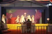 20:53, 17 ജനുവരി 2026 KSK2026-22034-16-Arabic Drama Red Skit Manas C Krishnna.jpg.JPG (പ്രമാണം) 6.89 എം.ബി. An emotive scene from an Arabic Drama (Play) performance at Stage 16 (Vaadamalli) during the 64th Kerala School Kalolsavam 2026. The photograph, captured by Manas C Krishnna, shows a High School girl in a white dress and pink hijab covered in red paint (simulating blood) while holding a doll. Two other performers sit behind her on a sloped stage prop at CMS HSS Thrissur. This intense skit is part of the theatrical competitions held during the state-level festival in January 2026. Photo click... 1