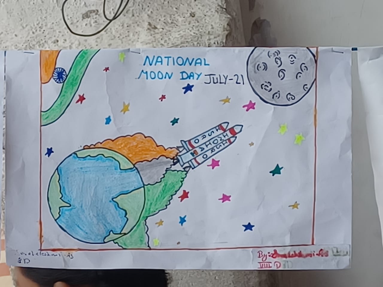 അന്താരാഷ്ട്ര ചാന്ദ്ര ദിനം ജൂലൈ 21, ആചരിക്കുന്നതിന്റെ ഭാഗമായി, കുട്ടികൾ നിർമ്മിച്ച പോസ്റ്ററുകൾ.