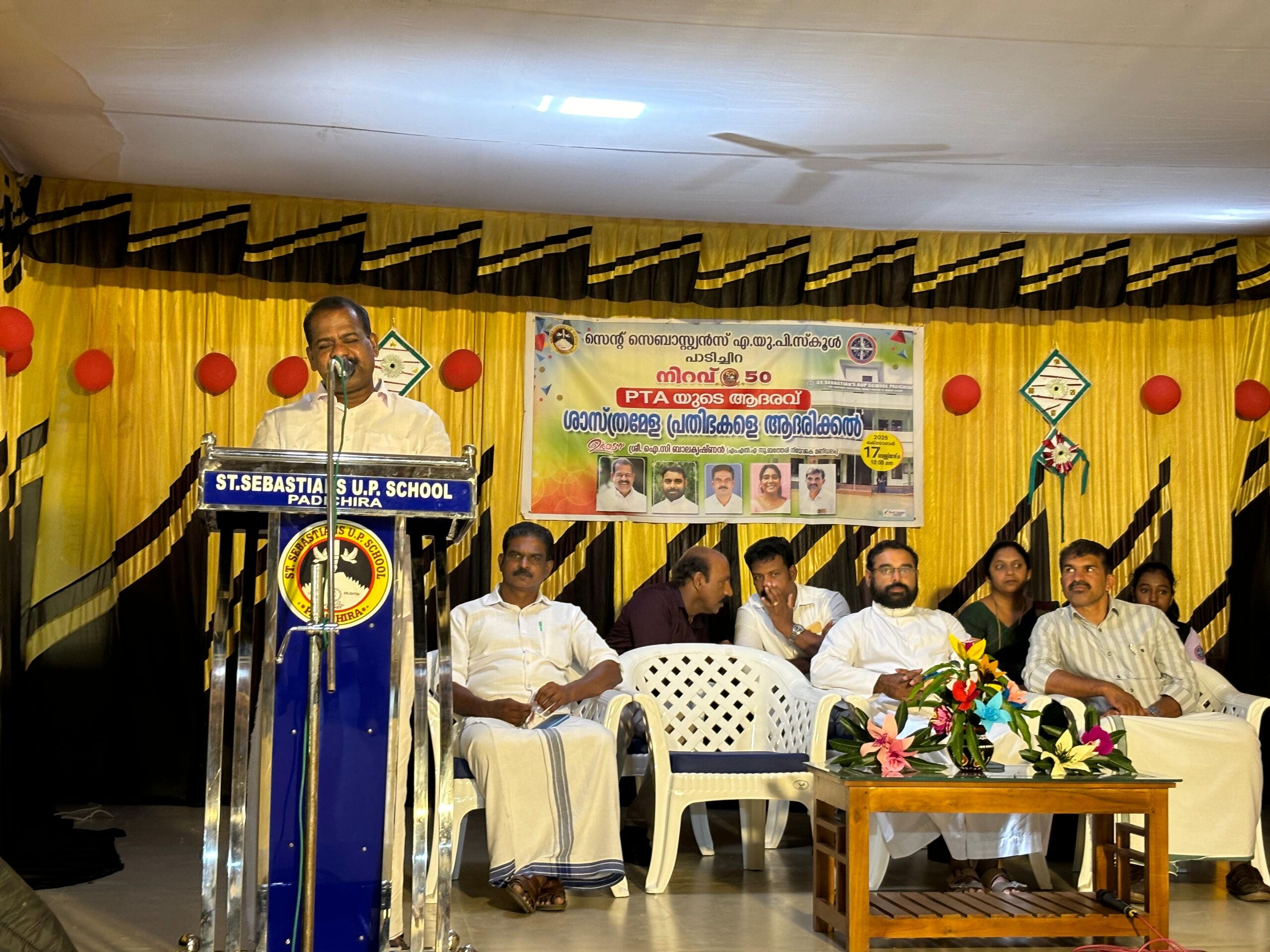 എം എൽ എ ശ്രീ ബാലകൃഷ്ണൻ വിവിധ മേള കളിൽ വിജയം വരിച്ചവരെ ആദരിക്കുന്നു.