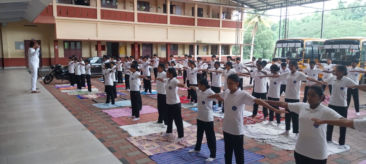 യോഗാദിനം ആചരിക്കുന്നതിന്റെ ഭാഗമായി എസ്.പി.സി. വിദ്യാർഥികൾ യോഗ അഭ്യസിക്കുന്നു