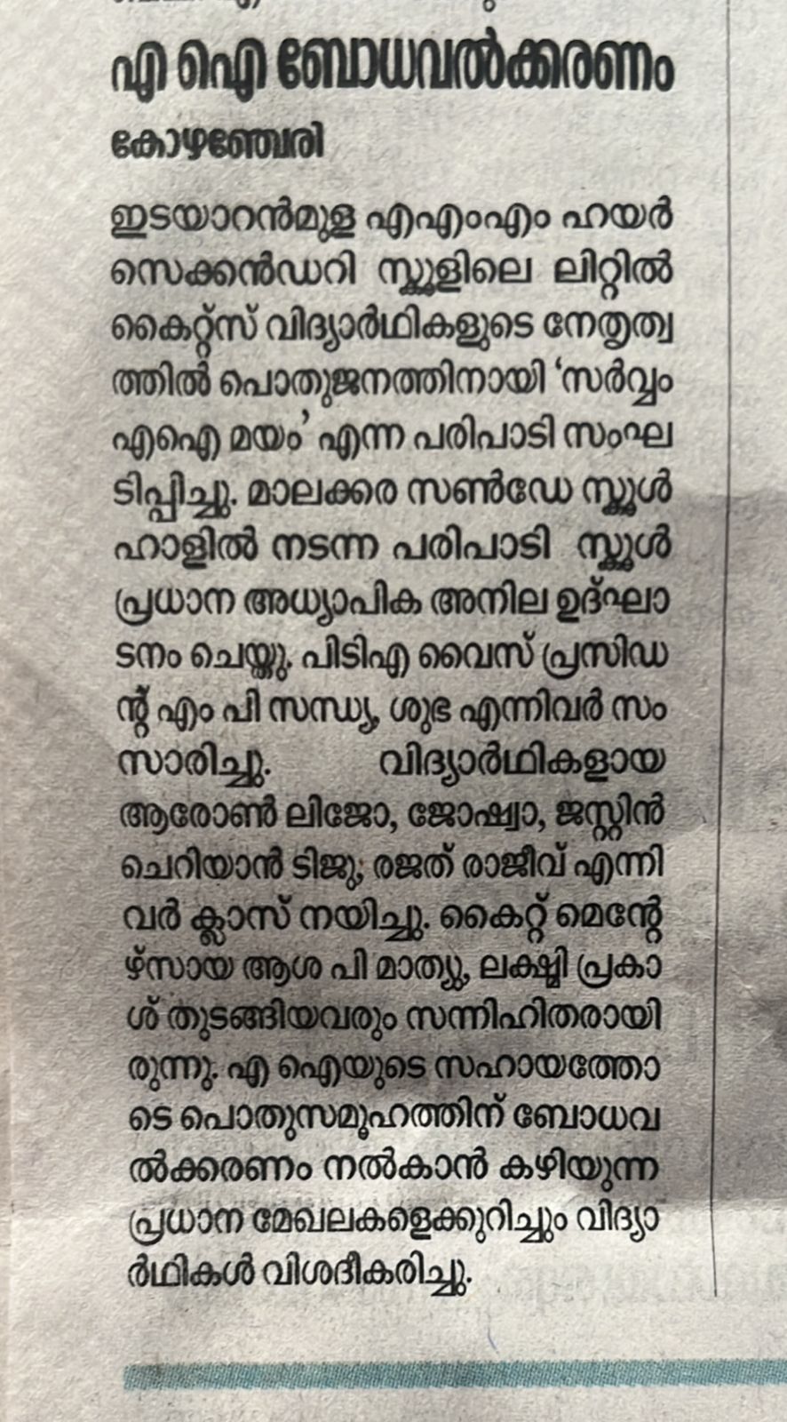 സമൂഹത്തിനായി എ.ഐ ബോധവത്കരണം - പത്ര വാർത്ത
