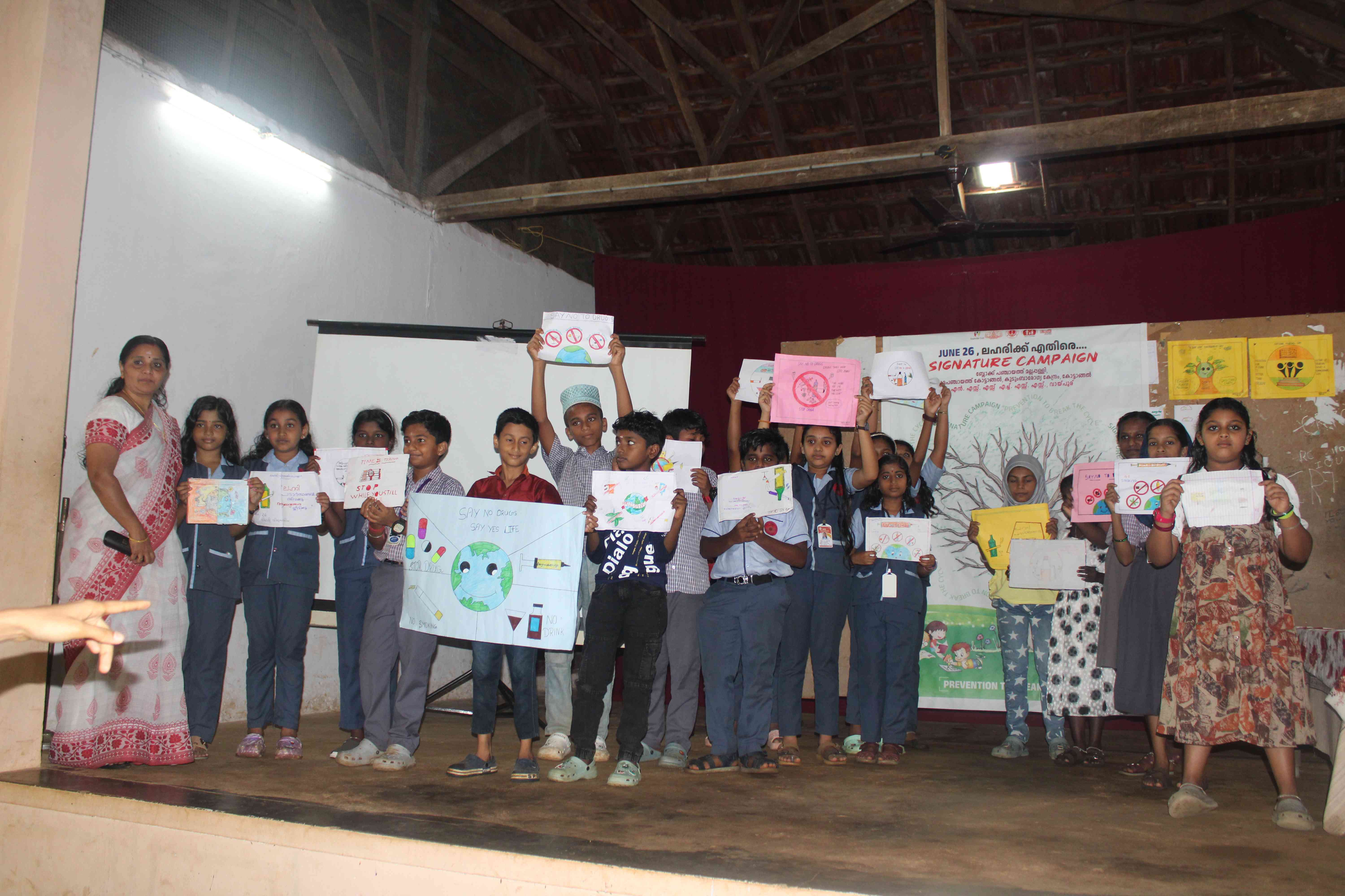 English⧼Colon⧽ Students showing there art on drug free kerala