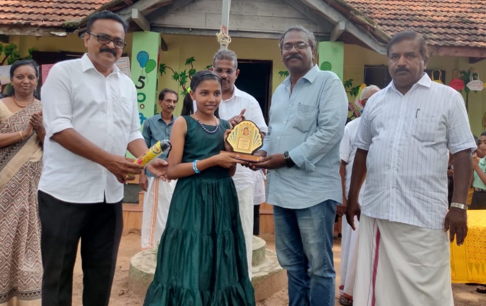 എൽ.എസ്.എസ് വിജയി അൽഫിദക്ക് ഹെഡ്മാസ്റ്റർ ഉപഹാരം നൽകുന്നു
