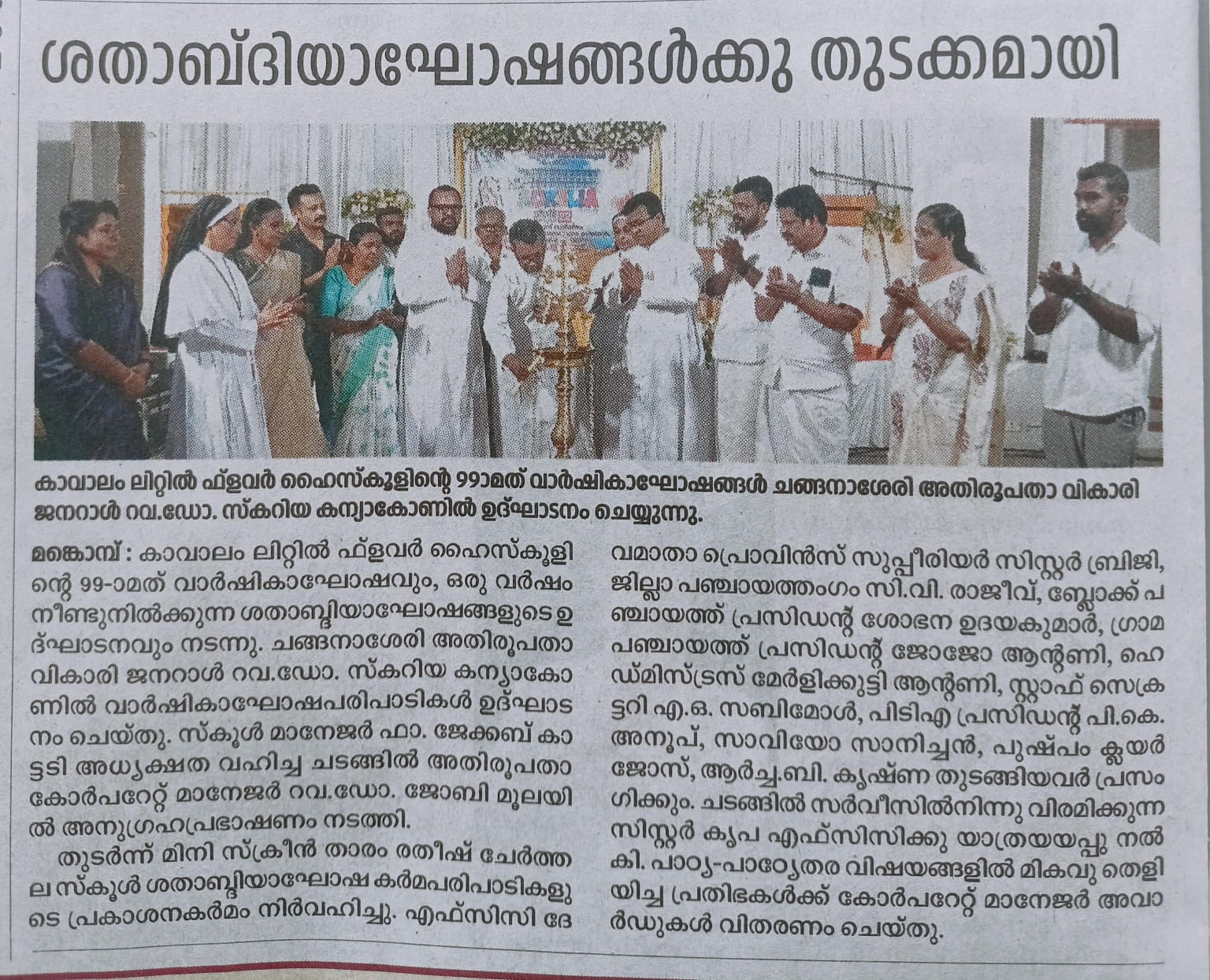 ശതാബ്ദി ആഘോഷങ്ങളിലേക്ക് കാവാലം ലിറ്റിൽ ഫ്ലവർ ഹൈസ്കൂൾ