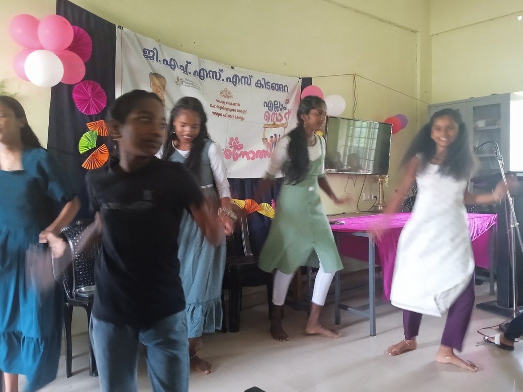 പ്രവേശനോത്സവഗാനത്തിനൊത്തു ചുവടുവച്ചു വിദ്യാർത്ഥിനികൾ