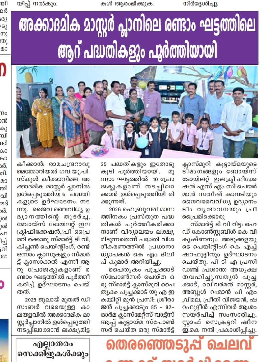 അക്കാദമിക മാസ്റ്റർ പ്ലാനിലെ രണ്ടാം ഘട്ടത്തിലെ 6 പ്രോജക്ടുകൾ പൂർത്തിയായി.