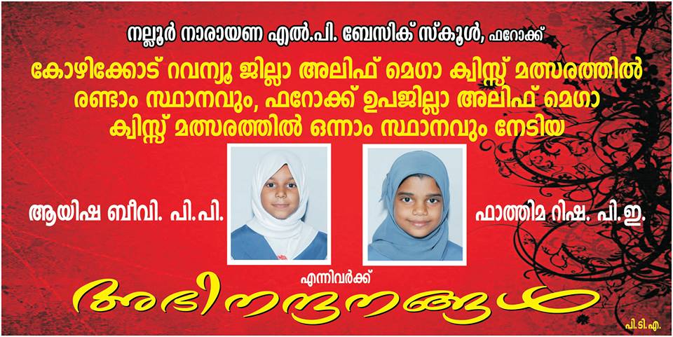 മലയാളം⧼Colon⧽ അലിഫ് ടാലന്റ് വിജയി ഫാത്തിമ റിഷ പി ഇ, ആയിശ ബീവി പി പി