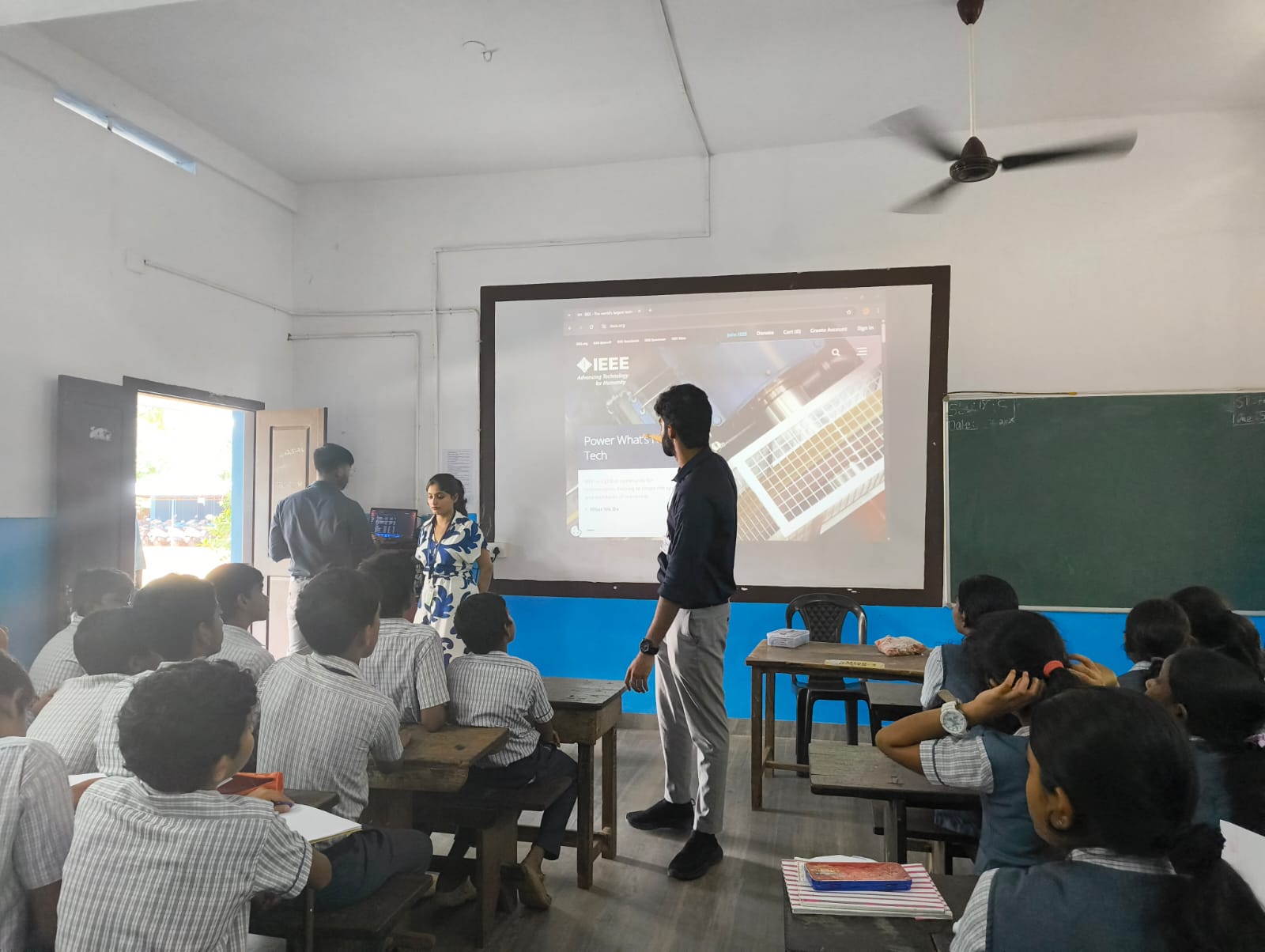 സഹൃദയ കോളേജിലെ വിദ്യാർത്ഥികൾ എൽ.കെ വിദ്യാർത്ഥികൾക്ക് എ.ഐ, റോബോട്ടിക്സ് എന്നിവയെക്കുറിച്ച് ക്ലാസ് നടത്തുന്നു.