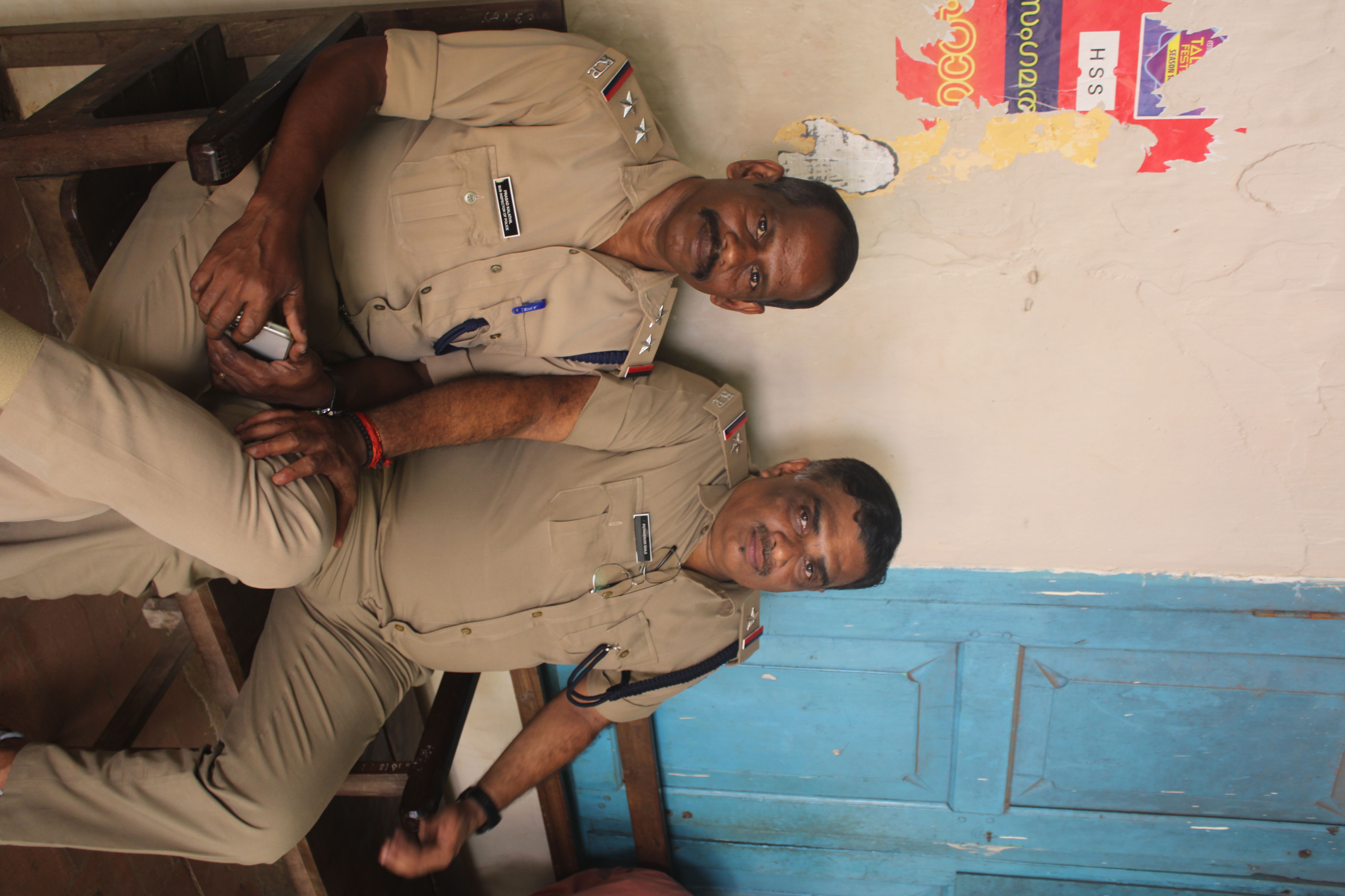 | നിലവിലുള്ളത് | 19:33, 16 ജനുവരി 2026 | 4,000 × 6,000 (6.39 എം.ബി.) | 9446078880 (സംവാദം | സംഭാവനകൾ) | Two police officers on duty are captured taking a brief rest at Stage 16 (Vaadamalli) during the 64th Kerala School Kalolsavam 2026. This photograph highlights the essential role of law enforcement in ensuring safety and order throughout the massive cultural event. Located at CMS HSS Thrissur, the image reflects the dedicated support staff working behind the scenes of the festival. Photo clicked by: Aadhel Noble Venue: Stage 16 Vaadamalli, Thrissur |