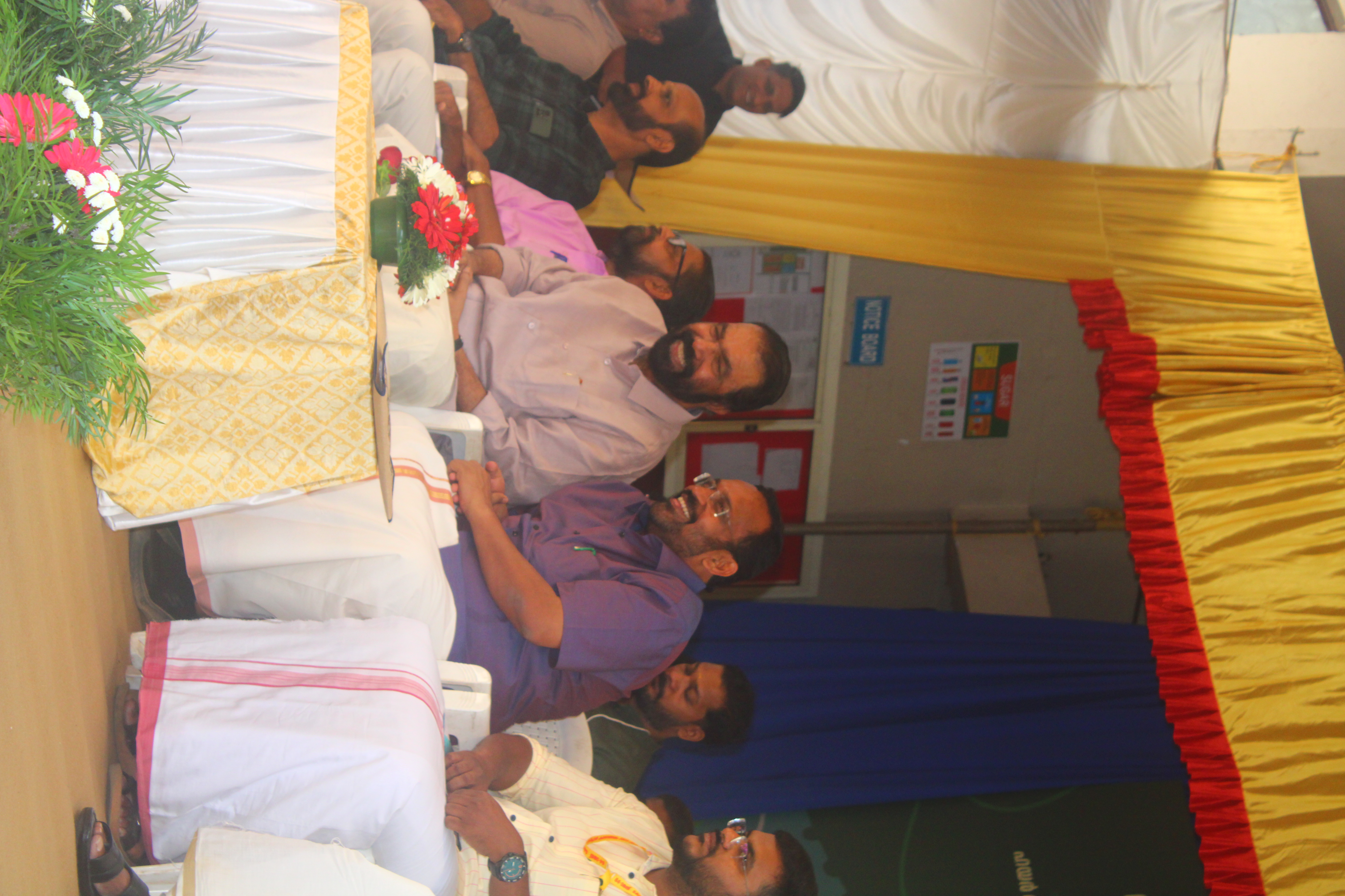 The ministers are seen smiling and engaging with other officials at Stage 16 (Vaadamalli), located at CMS HSS Thrissur.