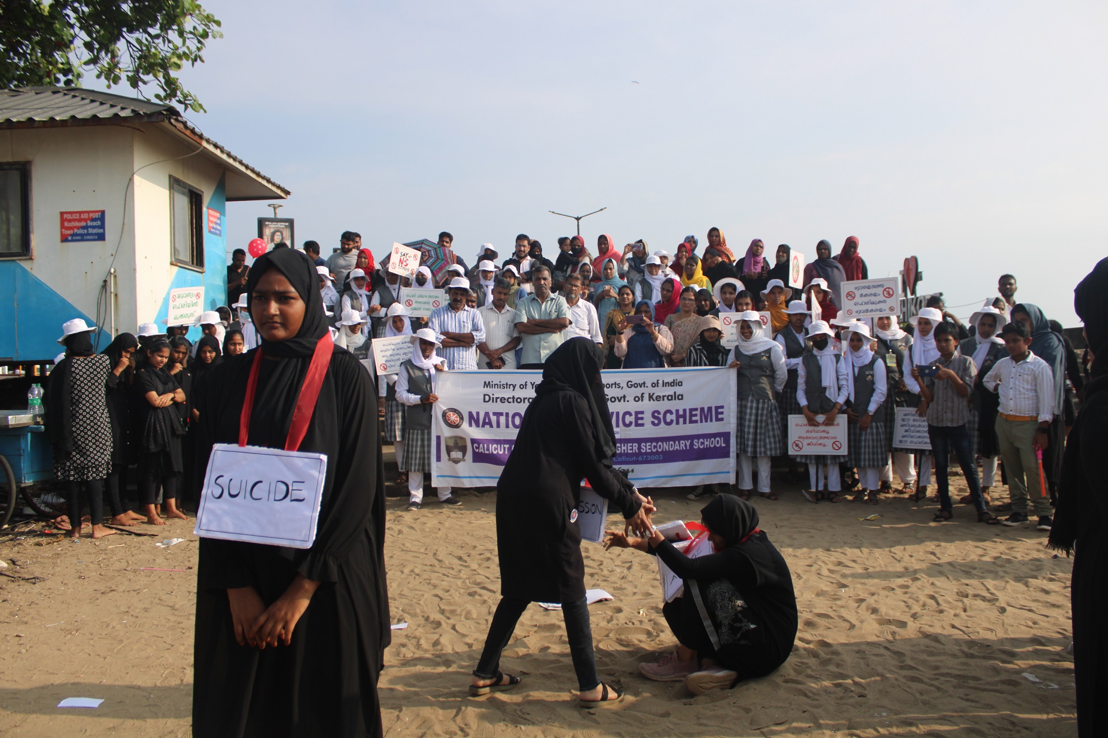 കാലിക്കറ്റ് ഗേൾസ് സ്കൂൾ എൻ.എസ്.എസ് വോളണ്ടിയർമാർ ലഹരിക്കെതിരെ കോഴിക്കോട് ബീച്ചിൽ തെരുവ് നാടകം അവതരിപ്പിക്കുന്നു