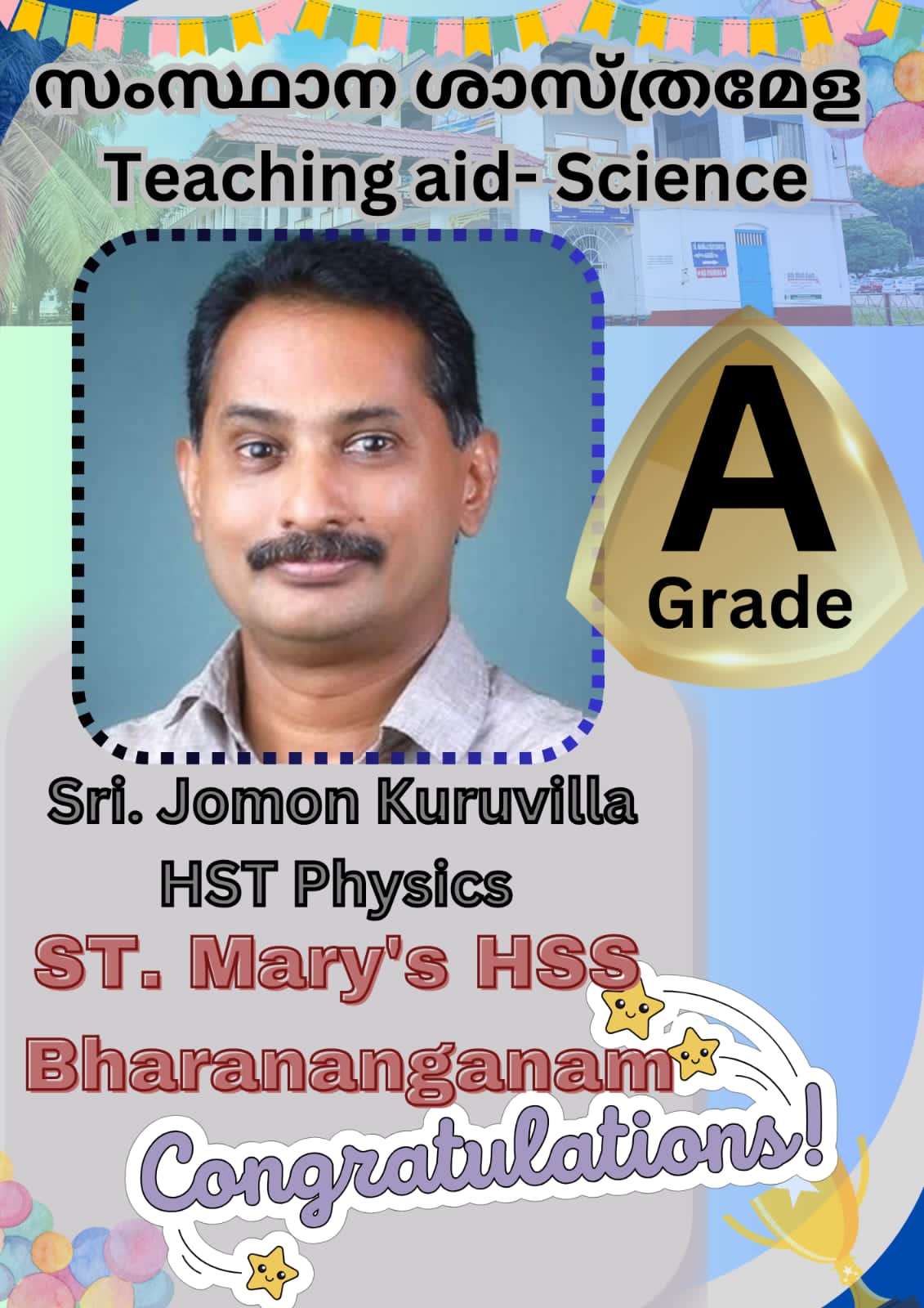 ശ്രീ ജോമോൻ കുരുവിള സാറിന് (HST Physics) A grade ലഭിച്ചു