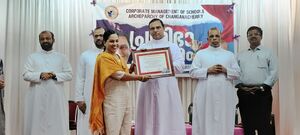 ജൂലൈ 5 നു ചങ്ങനാശേരി കോർപ്പറേറ്റ് മാനേജ്മന്റ് സംഘടിപ്പിച്ച Merit Day യിൽ S S L C പരീക്ഷയിൽ 100 % വിജയം നേടിയതിനു ചങ്ങനാശേരി അതിരൂപത ആർച്ച്ബിഷപ് മാർ തോമസ് തറയിൽ പിതാവിൽ നിന്ന് പുരസ്കാരം ഏറ്റു വാങ്ങുന്നു.