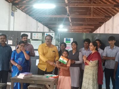 78-ാംസ്വാതന്ത്ര്യ ദിനത്തോടനുബന്ധിച്ച് വി വി ഹയർ സെക്കൻഡറി സ്കൂൾ എൻഎസ്എസ് യൂണിറ്റ് കുട്ടികൾക്ക് ദേശീയ പതാക നിർമ്മിച്ചുനൽകി.പ്രസ്തുത ചടങ്ങിൽ പ്രിൻസിപ്പൽ ശ്രീ ആർ രതീഷ് കുമാർ ഹെഡ്മിസ്ട്രസ് ശ്രീമതി സഫീന ബീവി ഡെപ്യൂട്ടി എച്ച് എം ശ്രീ ഉണ്ണികൃഷ്ണൻസ്റ്റാഫ് സെക്രട്ടറിമാർ ശ്രീ P S. ഗിരീഷ് കുമാർ ശ്രീ C S ഹരികൃഷ്ണൻഎൻഎസ്എസ് പ്രോഗ്രാം ഓഫീസർ ശ്രീമതി രാജലക്ഷ്മി എൽഅധ്യാപകരായ ശ്രീമതി സൗമ്യ ശ്രീ ധനേഷ് എന്നിവർ പങ്കെടുത്തു