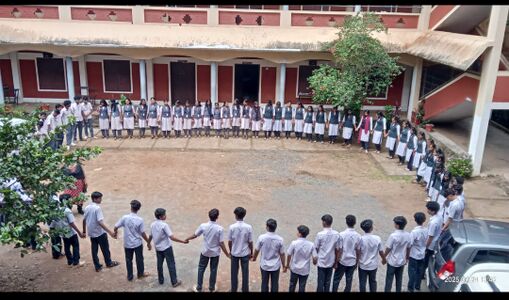 താമരക്കുളം വി വി ഹയർ സെക്കൻഡറി സ്കൂൾ എൻഎസ്എസ് യൂണിറ്റ് (നമ്പർ 60) ജീവിതോത്സവം 2025  ഉദ്ഘാടനം പ്രിൻസിപ്പൽ ശ്രീ രതീഷ് കുമാർ നിർവഹിച്ചു തുടർന്ന് മനുഷ്യശൃംഖല രൂപീകരിച്ചു