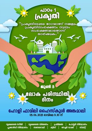 ലോക പരിസ്ഥിതി ദിനത്തോടനുബന്ധിച്ച് ഹോളി ഫാമിലി ഹൈസ്കൂളിൽ പരിസ്ഥിതി ദിനാഘോഷ പരിപാടി നടത്തി. വിദ്യാർത്ഥി പ്രതിനിധി കുമാരി ശിവാനി പരിപാടിക്ക് സ്വാഗതം ആശംസിച്ചു. സ്കൂൾ ഹെഡ്മിസ്ട്രസ്സ് റവ.സി. ഷേബി കുര്യൻ വൃക്ഷത്തൈകൾ കുട്ടികൾക്ക് നൽകിക്കൊണ്ട് ആശംസ അർപ്പിച്ചു. എഡ്യൂക്കേഷൻ കൗൺസിലർ ശ്രീമതി. ജിത ഷിജോയ് അധ്യക്ഷത വഹിച്ചു. മാതൃകാ കർഷകൻ ശ്രീ.പയസ് കുട്ടികൾക്ക് വിത്തുകൾ നൽകികൊണ്ട് ഉദ്ഘാടന കർമ്മം നിർവഹിച്ചു. പരിസ്ഥിതി സംരക്ഷണ പ്രതിജ്ഞ നടത്തി. വൃക്ഷത്തൈകൾ നട്ടു. സ്കൗട്ട് ആൻഡ് ഗൈഡ് സിന്റെയും സോഷ്യൽ സയൻസ് ക്ലബ്ബിന്റെയും നേതൃത്വത്തിൽ നടത്തിയ റാലി, സമൂഹഗാനം, സംഘനൃത്തം, പ്രസംഗം, സ്കിറ്റ് എന്നിവ ഈ ദിവസത്തെ കൂടുതൽ ഹരിതാഭമാക്കി. പിടിഎ പ്രസിഡന്റ് വാർഡ് കൗൺസിലറും പൊതുമരാമത്ത് സ്റ്റാൻഡിങ് കമ്മിറ്റി ചെയർപേഴ്സനുമായ ശ്രീമതി ലെക്സി ജോയ്, ബി ആർ സി റിസോഴ്സ് പേഴ്സൺ ബീന ടീച്ചർ എന്നിവർ ആശംസകൾ അർപ്പിച്ചു. വിദ്യാർത്ഥി പ്രതിനിധി കുമാരി ദിയ ഷാജി ചടങ്ങിന് നന്ദി പറഞ്ഞു.