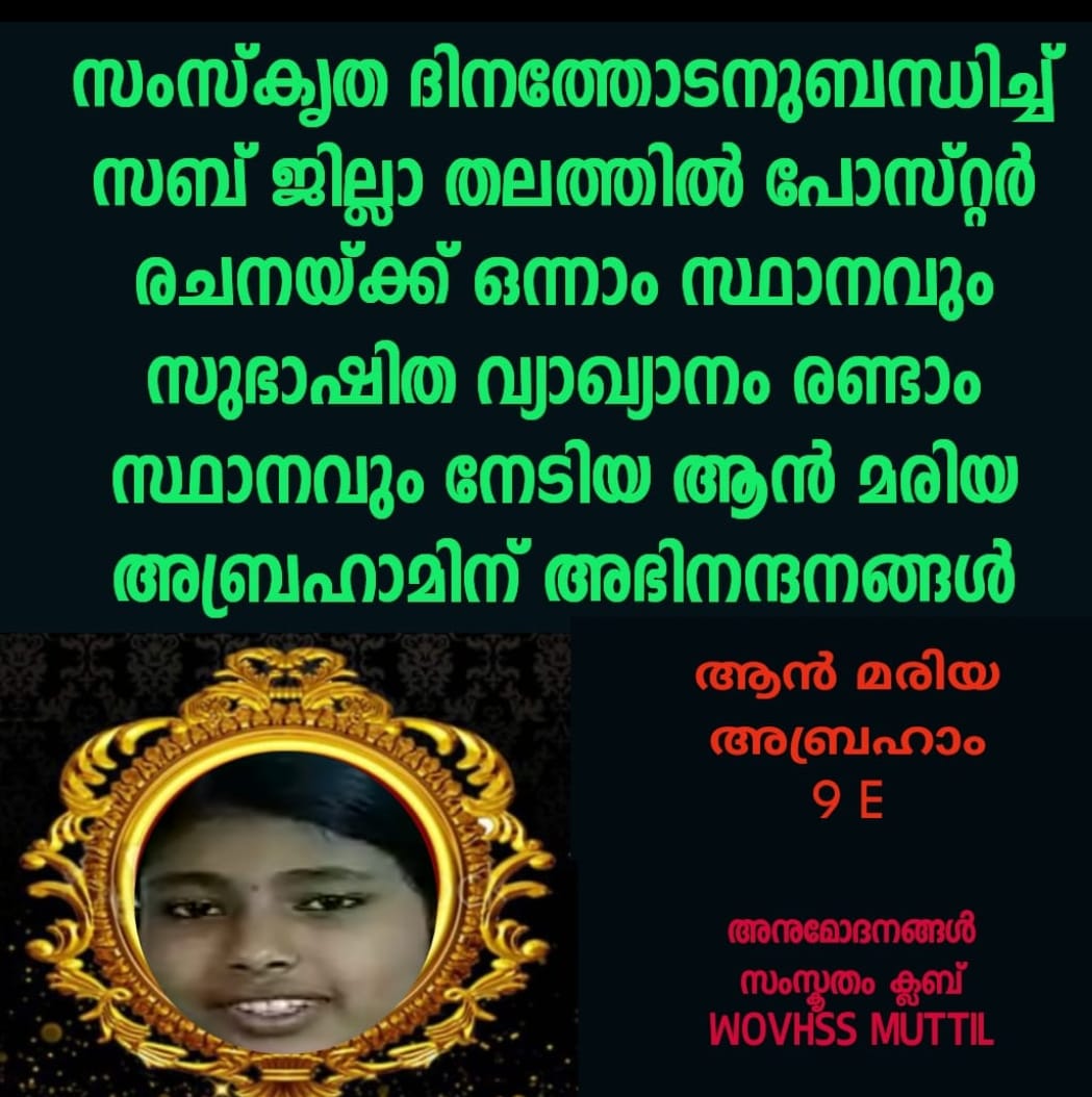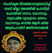 | 14:31, 10 ഫെബ്രുവരി 2022 | Wovhss 2021 sanskrit day celebration.jpg (പ്രമാണം) | 137 കെ.ബി. | WOVHSS MUTTIL 2021 SANSKRIT DAY CELEBRATION SUB DISTRICT COMPETITIONS POSTER MAKING:AAN MARIYA ABRAHAM (9E) FIRST PRIZE SUBHASHITHA VYAKYANAM: AAN MARIYA ABRAHAM(9E) SECOND PRIZE | 1 | |