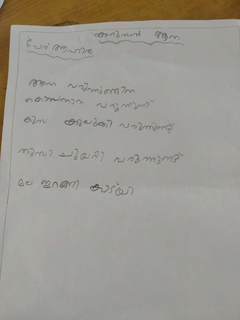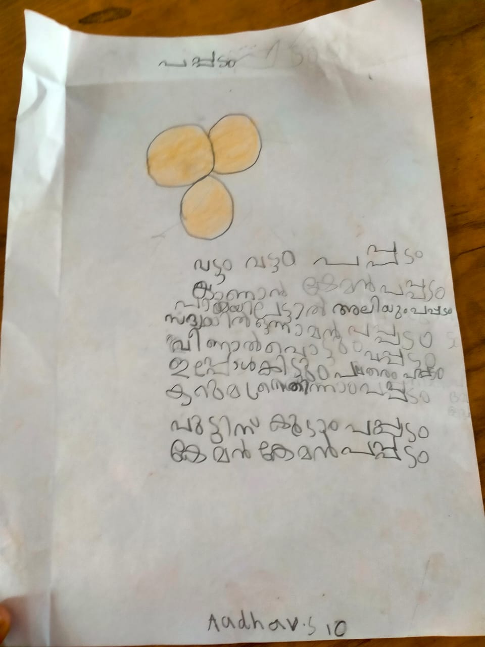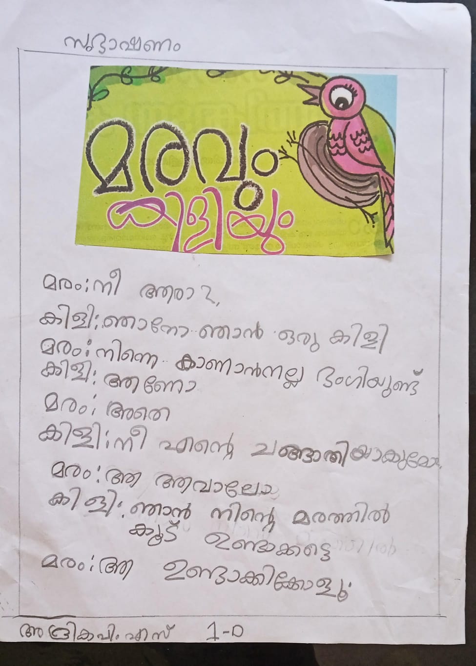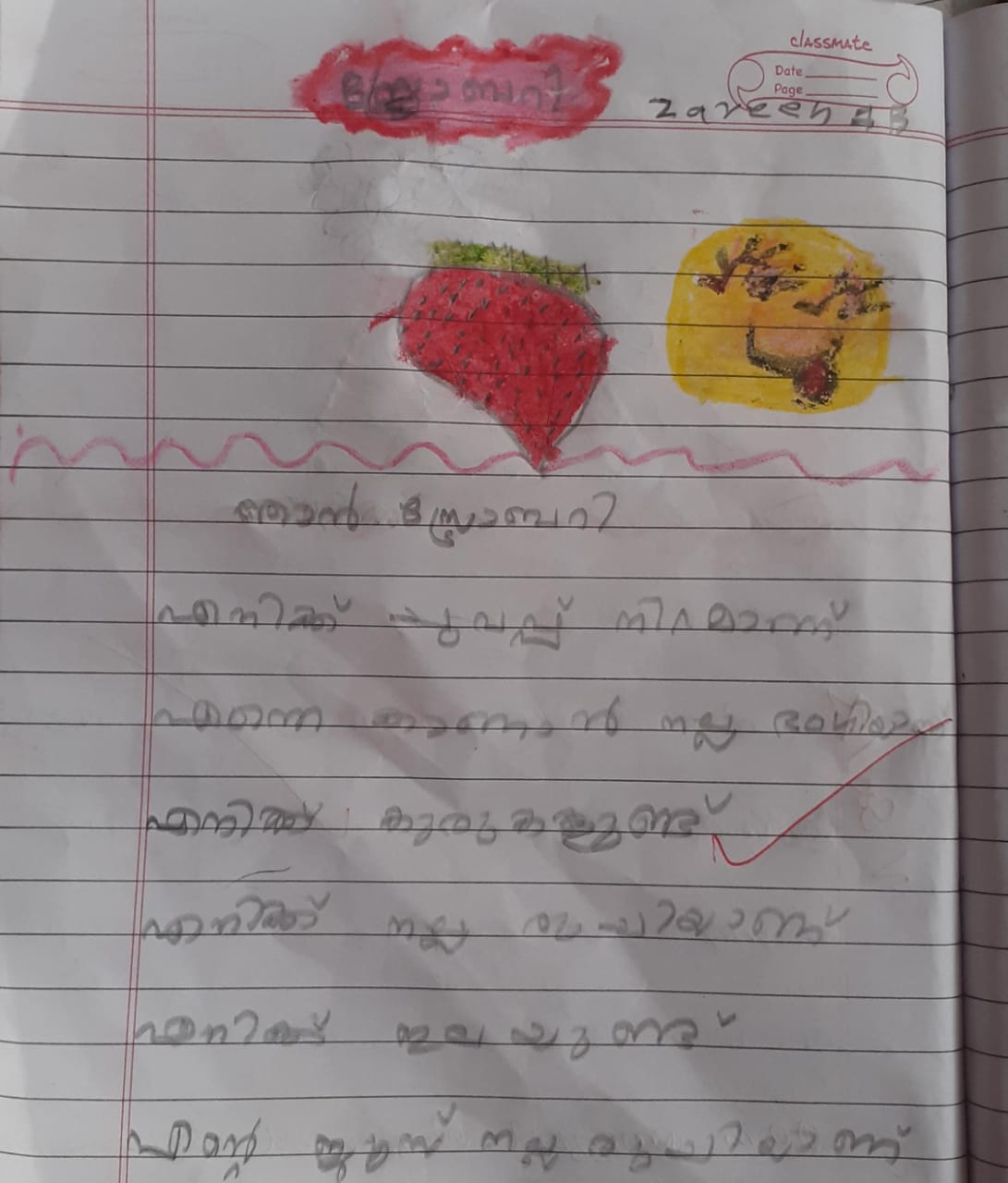 ഒന്നാം ക്ലാസിലെ കുട്ടിയുടെ രചന