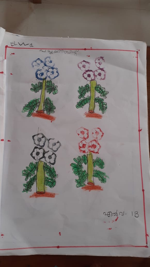 ഒന്ന് ബി ക്ലാസ്സിലെ ഭുവനയുടെ ചിത്രം കുഞ്ഞെഴുത്തിലേക്കായി