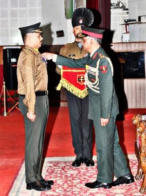 '''Lt. Col. Arunkumar M, receiving Sena Medal Gallantry from Lt. Gen. D Anbu, PVSM, UYSM, AVSM,YSM,SM,ADC Northern Army Cdr on 14 Feb 2018.''' | |||