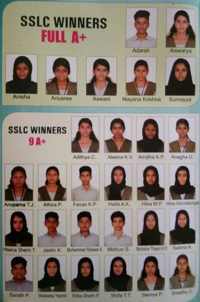 2017-18 വർഷം നടന്ന എസ്.എസ്.എൽ.സി പരീക്ഷയിൽ 99.7% വിജയം - എല്ലാ വിഷയത്തിനും A+ - 2 2, 9 A+ - 17 കുട്ടികൾ
