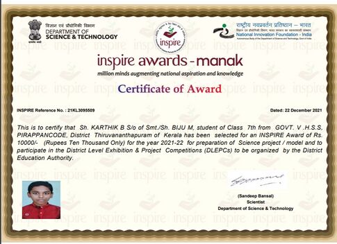 [[പ്രമാണം:43003 inspire1.jpg|ലഘുചിത്രം|371x371px|'''inspire award notice''']] | [[പ്രമാണം:43003 inspire1.jpg|ലഘുചിത്രം|371x371px|'''inspire award notice''']] | ||