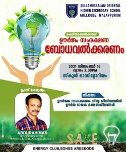 ഊർജ്ജസംരക്ഷണം നമ്മുടെ ഓരോരുത്തരുടെയും കടമായാണെങ്കിലും നാം അതിനോട് നീതി പുലർത്താറില്ല. ഊർജ്ജസംരക്ഷണം എന്നത് ഇന്ന് ഒരു ആഗോള ആവശ്യമായി മാറിയിരിക്കുകയാണ്. ഊർജ്ജ സംരക്ഷണം കുട്ടികളിൽ എത്തിക്കാനായി എനർജി ക്ലബ്ബിൻറെ ആഭിമുഖ്യത്തിൽ നടത്തിയ വിവിധ പരിപാടികൾ .