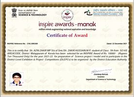 2021-22 വർഷത്തെ ഇൻസ്പെയർ അവാർഡ് ജേതാക്കൾ