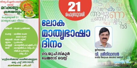 ലോക മാതൃഭാഷ ദിനത്തോടനുബന്ധിച്ച് ചെമ്മനാട് വെസ്റ്റ് ഗവൺമെന്റ് യു.പി. സ്കൂളിൽ ഫെബ്രുവരി 21ന് "മറക്കല്ലേ മലയാളം" ശിൽപശാല സംഘടിപ്പിച്ചു. ദേശീയ അധ്യാപക അവാർഡ് ജേതാവും സാംസ്കാരിക പ്രവർത്തകനുമായ വി. ശ്രീനിവാസൻ ദിനാചരണത്തിന്റെ പ്രസക്തി ചരിത്രത്തിന്റെ പശ്ചാത്തലത്തിൽ കഥകളായും കവിതകളിലൂടെയും നാടൻപാട്ടുകളിലൂടെയും ആവിഷ്കരിച്ചു. മാതൃഭാഷാ വാരാചരണത്തിന്റെ ഭാഗമായി എൽ.പി, യു.പി. കുട്ടികൾക്ക് കവിതാരചന. കഥാരചന ഭാഷക്വിസ്, പ്രസംഗം, കാവ്യശിൽപം, നിമിഷ പ്രസംഗം, 'കുട്ടികൾക്കായ് രക്ഷിതാക്കളുടെ ഒരു പാട്ട്' തുടങ്ങിയ വിവിധ പരിപാടികളാണ് സ്കൂളിൽ സംഘടിപ്പിച്ചത്. ഫെബ്രുവരി 27ന് മാത്യഭാഷാ വാരാചരണം സമാപിച്ചു. കുട്ടികൾ സ്വയം മാത്യ ഭാഷയെ അടുത്തറിയുക എന്ന ലക്ഷ്യത്തോടെയാണ് ഈ പരിപാടി സംഘടിപ്പിച്ചത്. | ലോക മാതൃഭാഷ ദിനത്തോടനുബന്ധിച്ച് ചെമ്മനാട് വെസ്റ്റ് ഗവൺമെന്റ് യു.പി. സ്കൂളിൽ ഫെബ്രുവരി 21ന് "മറക്കല്ലേ മലയാളം" ശിൽപശാല സംഘടിപ്പിച്ചു. ദേശീയ അധ്യാപക അവാർഡ് ജേതാവും സാംസ്കാരിക പ്രവർത്തകനുമായ വി. ശ്രീനിവാസൻ ദിനാചരണത്തിന്റെ പ്രസക്തി ചരിത്രത്തിന്റെ പശ്ചാത്തലത്തിൽ കഥകളായും കവിതകളിലൂടെയും നാടൻപാട്ടുകളിലൂടെയും ആവിഷ്കരിച്ചു. മാതൃഭാഷാ വാരാചരണത്തിന്റെ ഭാഗമായി എൽ.പി, യു.പി. കുട്ടികൾക്ക് കവിതാരചന. കഥാരചന ഭാഷക്വിസ്, പ്രസംഗം, കാവ്യശിൽപം, നിമിഷ പ്രസംഗം, 'കുട്ടികൾക്കായ് രക്ഷിതാക്കളുടെ ഒരു പാട്ട്' തുടങ്ങിയ വിവിധ പരിപാടികളാണ് സ്കൂളിൽ സംഘടിപ്പിച്ചത്. ഫെബ്രുവരി 27ന് മാത്യഭാഷാ വാരാചരണം സമാപിച്ചു. കുട്ടികൾ സ്വയം മാത്യ ഭാഷയെ അടുത്തറിയുക എന്ന ലക്ഷ്യത്തോടെയാണ് ഈ പരിപാടി സംഘടിപ്പിച്ചത്. | ||