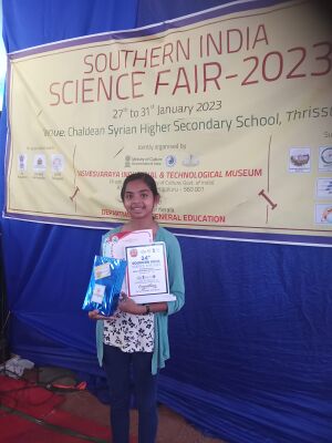 2023 ജനുവരി 26 മുതൽ 31 വരെ തൃശൂരിൽ വച്ച് നടന്ന സൗത്ത് ഇന്ത്യൻ ശാസ്ത്രമേളയിൽ 10 H ലെ കുമാരി.ആൻ ലിയ ഷാജി സ്റ്റിൽ മോഡലിൽ മിന്നുന്ന പ്രകടനം കാഴ്ചവച്ചു . ISRO യുടെ സ്പെഷ്യൽ സമ്മാനത്തിനു അർഹയായി. | |||
