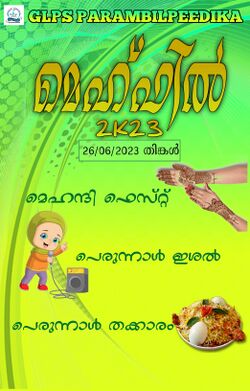 പറമ്പിൽ പീടിക: പറമ്പിൽപീടിക സ്കൂളിൽ പെരുന്നാളാഘോഷത്തിന്റെ ഭാഗമായി "ഇശൽ"-മാപ്പിളപ്പാട്ട് മത്സരം,"മൈലാഞ്ചി ഫെസ്റ്റ്"- മൈലാഞ്ചിടൽ മത്സരം എന്നിവയ്ക്കൊപ്പം പ്രത്യേക ബിരിയാണി കൂടി തയ്യാറാക്കിയായിരുന്നു