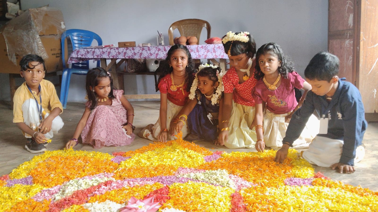 വിദ്യാർത്ഥികൾ പൂക്കളം ഇടുന്നു |