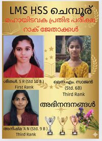 - മികച്ച ലഹരിവിരുദ്ധ പ്രവർത്തനങ്ങൾക്കുള്ള ജില്ലാതല അവാർഡ് എൽ. എം.എസ്.എച്ച്.എസ്.എസ്. ചെമ്പൂര്