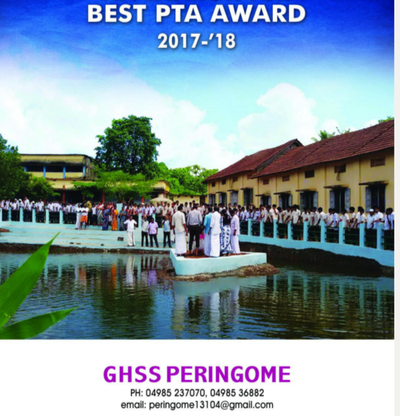 കണ്ണൂർ ജില്ലയിലെ ഏറ്റവും നല്ല പി.ടി.എക്ക് ഉള്ള 2018 ലെ അവാർഡ് പെരിങ്ങോം സ്കൂളിന്