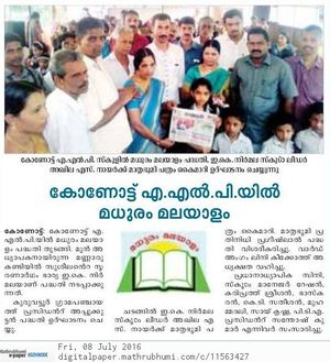 കേരളപ്പിറവിയുടെ ഭാഗമായി കോണോട്ട് എ .എൽ .പി സ്കൂളിൽ സംഘടിപ്പിച്ച 'കേരളീയം'ചരിത്രപ്രദർശനം കുട്ടികൾക്കും മുതിർന്നവർക്കും ആവേശവുംപഠനാർഹവുമായി.കേരളചരിത്രവുമായി ബന്ധപ്പെട്ട പുതിയ അറിവുകൾ ഷിജിടീച്ചർ കുട്ടികളുമായി പങ്ക് വെച്ചു.കുട്ടികളുടെ വിവിധ കലാപരിപാടികൾ നടന്നു