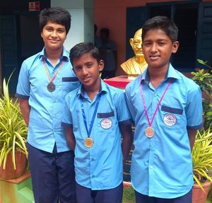 ഫിഫ ലോകകപ്പ് ഫുട്ബാൾ റഷ്യ -2018 നോടനുബന്ധിച്ച് അവനവഞ്ചേരി ഗവ.ഹൈസ്കൂളിൽ സംഘടിപ്പിച്ച ക്വിസ് മത്സരത്തിൽ ഒന്നാം സ്ഥാനം നേടിയ ഗോകുൽ രാജ്(നടുവിൽ), രണ്ടാം സ്ഥാനം നേടിയ ശ്രീവിനായക് പ്രവീൺ(വലത്ത്), മൂന്നാം സ്ഥാനം നേടിയ അഭിഷേക് എം.നായർ (ഇടത്) എന്നിവർ മെഡലുകളുമായി
