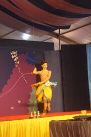 | 19:09, 16 ജനുവരി 2026 | KSK2026-22034-2-Bharatanatyam HSB Aaron Anooj Manuel.JPG (പ്രമാണം) | 7.45 എം.ബി. | A High School boy delivers a captivating Bharatanatyam performance at Stage 2 (Paarijaatham) during the 64th Kerala School Kalolsavam 2026. The dancer, dressed in a vibrant yellow and blue traditional costume with golden temple jewelry, is captured in a graceful classical pose. The stage backdrop features the official festival branding in purple and orange tones, while a pedestal fan and judging table are visible at the sides. This moment highlights the technical skill and cultural heritage c... | 1 | |