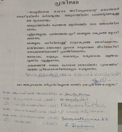 | 10 | ഇ.ബി.രാധമ്മ | 1980 -കൾ | പ്രധാനാധ്യാപിക |