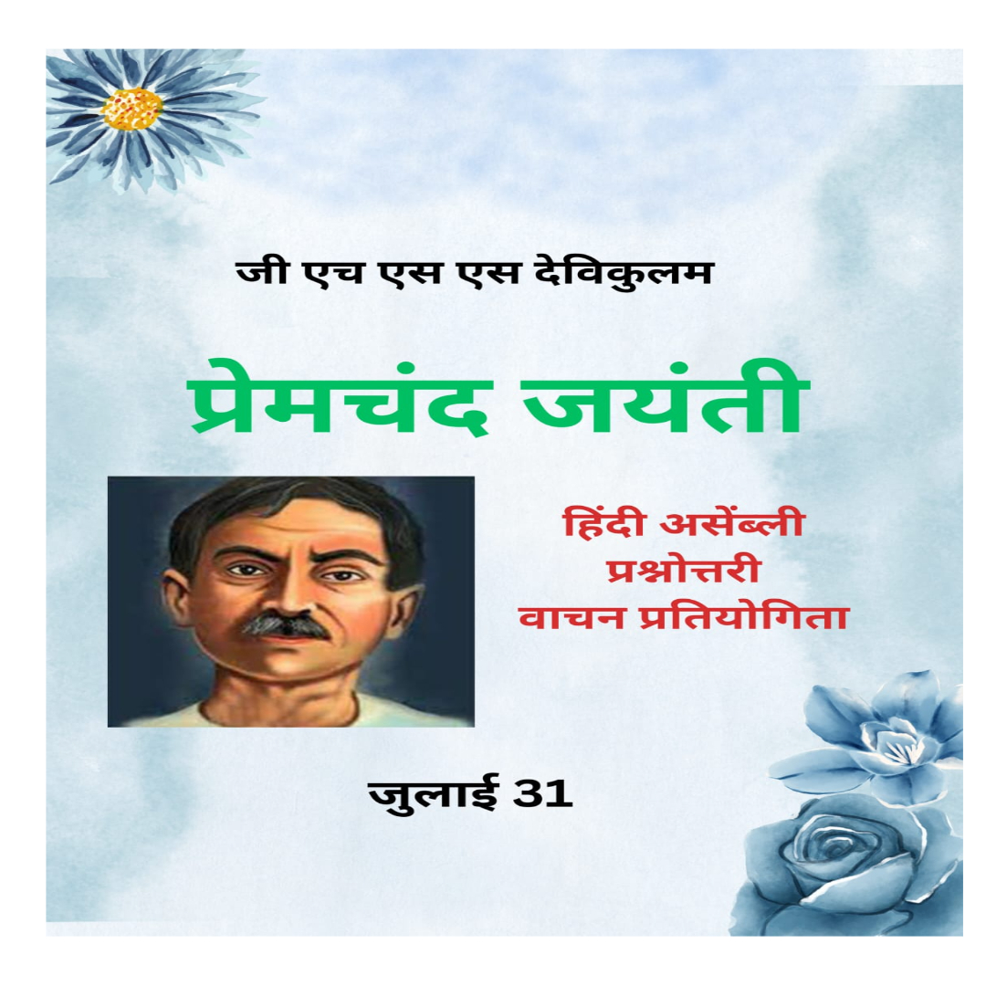 | 13:30, 8 ഓഗസ്റ്റ് 2025 | Premchandh Jayanthi.jpg (പ്രമാണം) | 658 കെ.ബി. | On the occasion of **Premchand Jayanthi**, our school conducted a special **Hindi assembly** followed by a **reading** and **quiz competition** to honour the great Hindi literary figure **Munshi Premchand**. The assembly featured speeches, poems. In the reading competition, students presented excerpt from his work.The quiz competition tested students' knowledge about Premchand’s life, characters, and contributions to Hindi literature. The event inspired a deep appreciation for Hindi language... | അതെ | |
